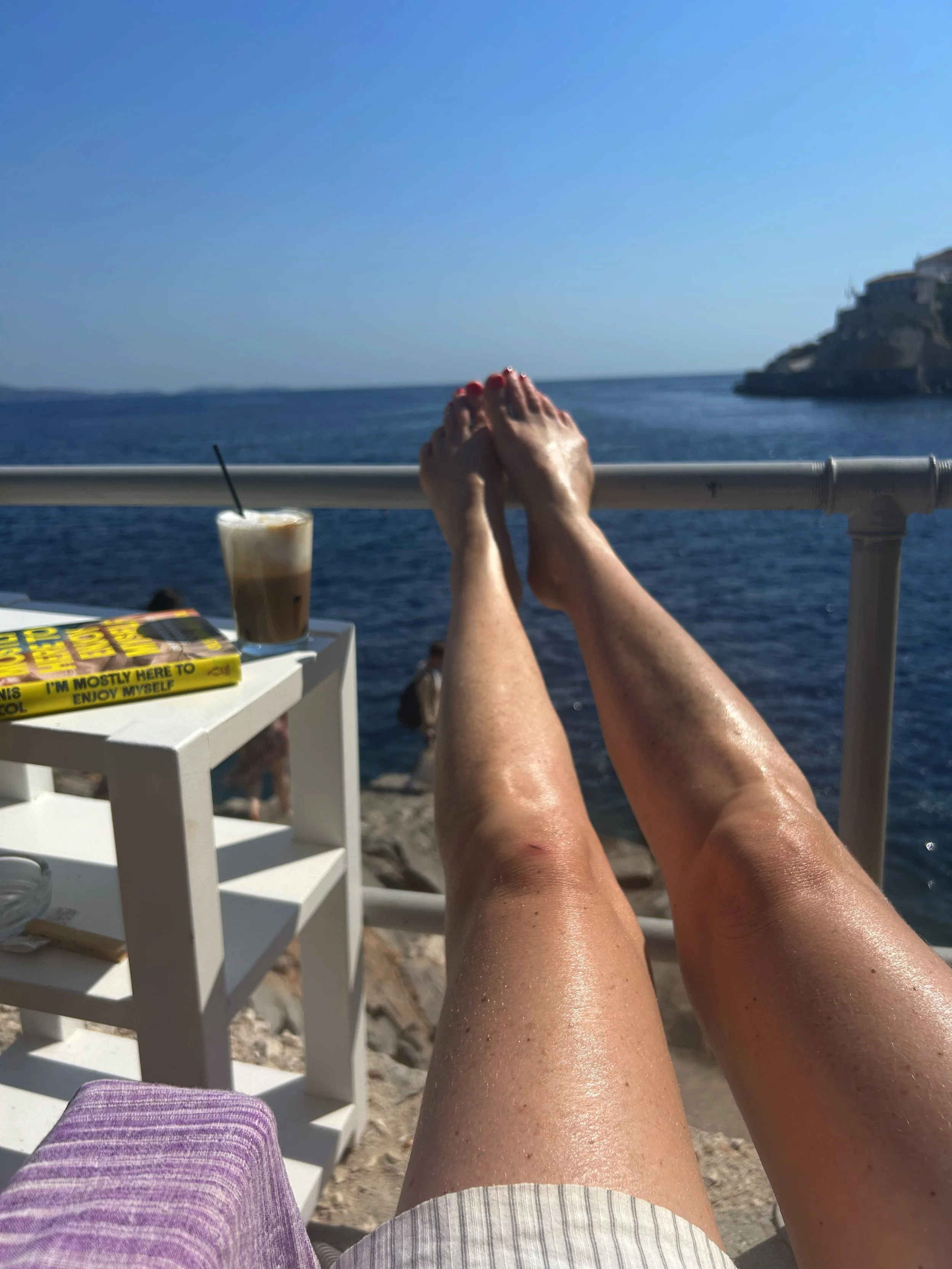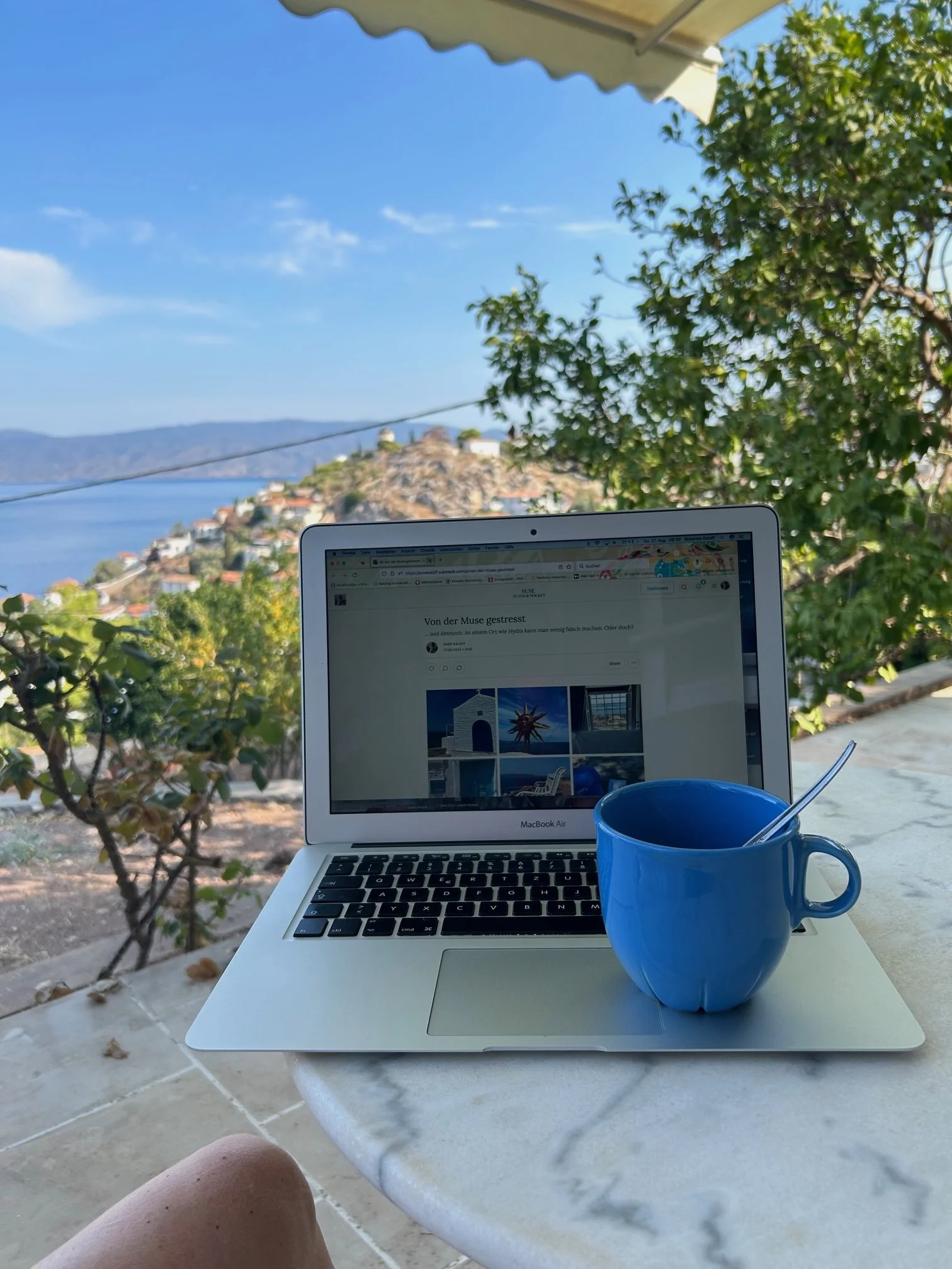 Ausreichend freie Zeit, um zu reflektieren, auf der autofreien Insel zu spazieren, observierend und schreibend in den Cafés am Hafen zu sitzen, im glasklaren Meer zu baden.
